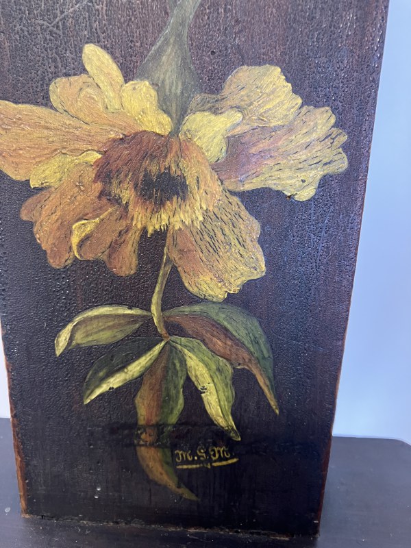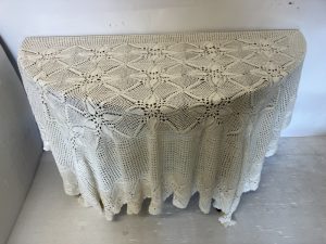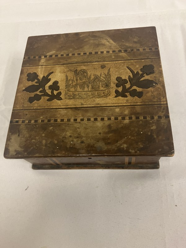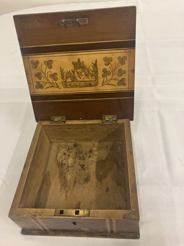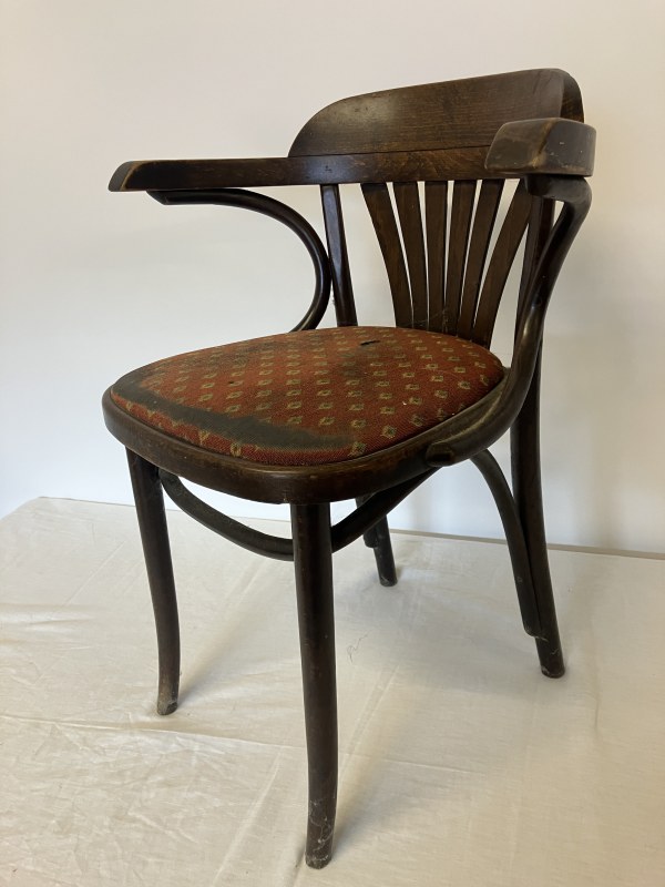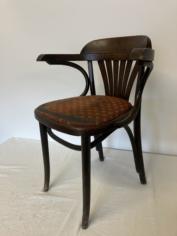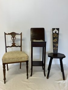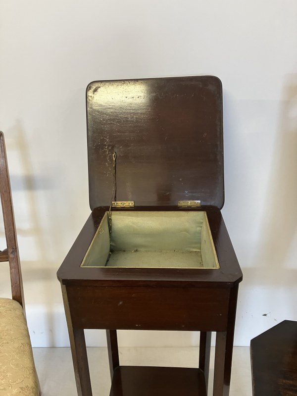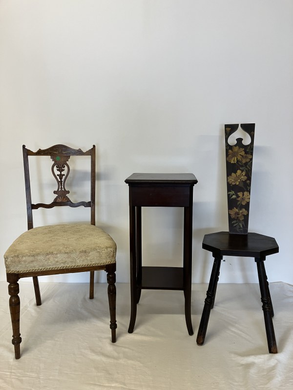 Inlaid bedroom chair, poker work chair and small lift top table. (3)