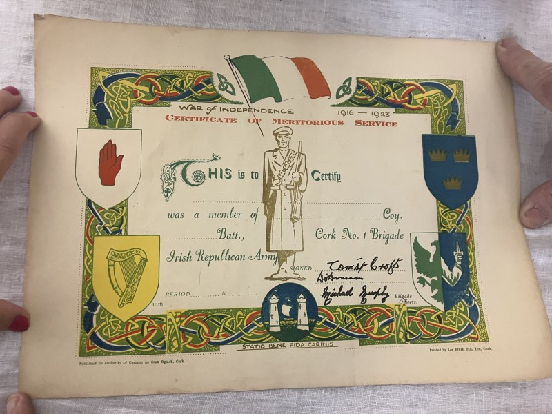 War of Independence 1916-1923, Certificate of Meritorious Service. Cork interest.