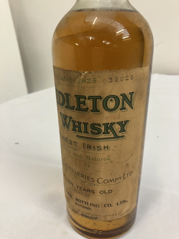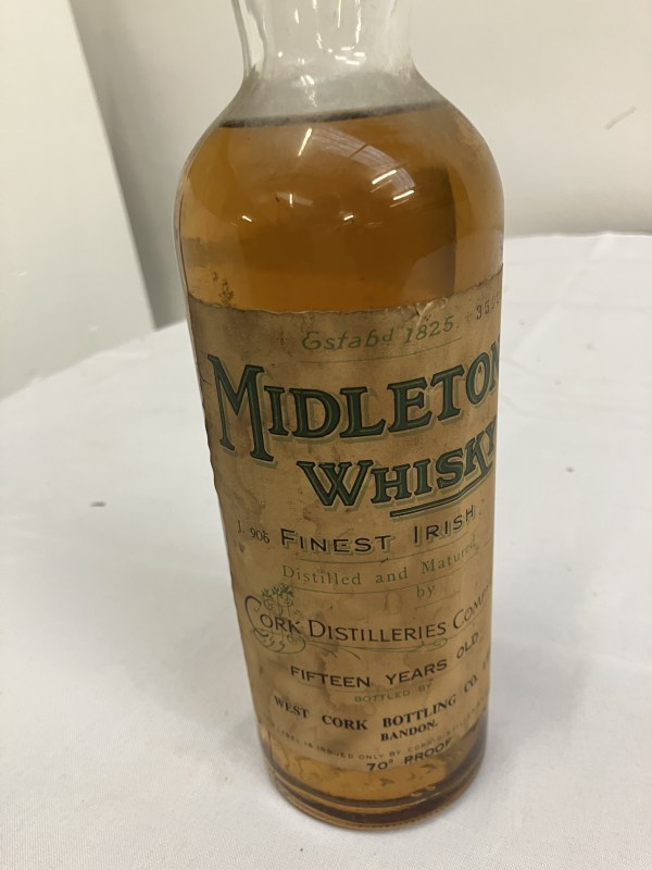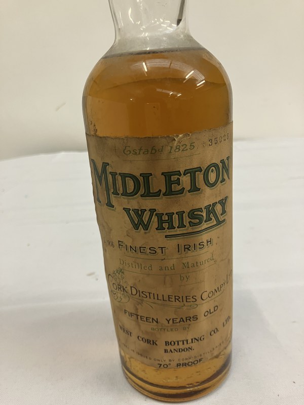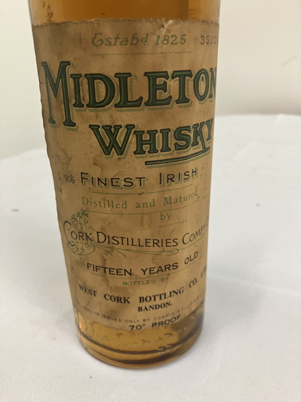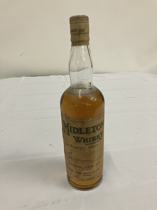A rare bottle of Midleton whiskey, 15 years old, Distilled and Matured by the Cork Distillers Co., bottled by West Cork Bottling Co., Bandon.