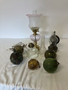 A Cork contents to include a good collection of 11, 9 & 7 bar Cork chairs (sets, pairs), glassware, a collection of antique oil lamps & parts, clocks, silver, jewellery & numerous effects.