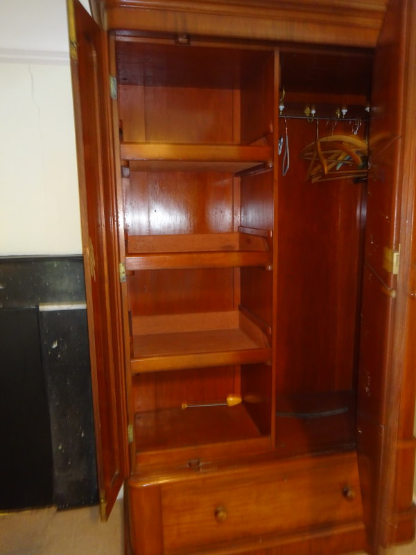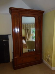 Victorian mahogany mirror door wardrobe with nicely fitted interior. H. 215cm, W. 134cm, D. 59cm approx.