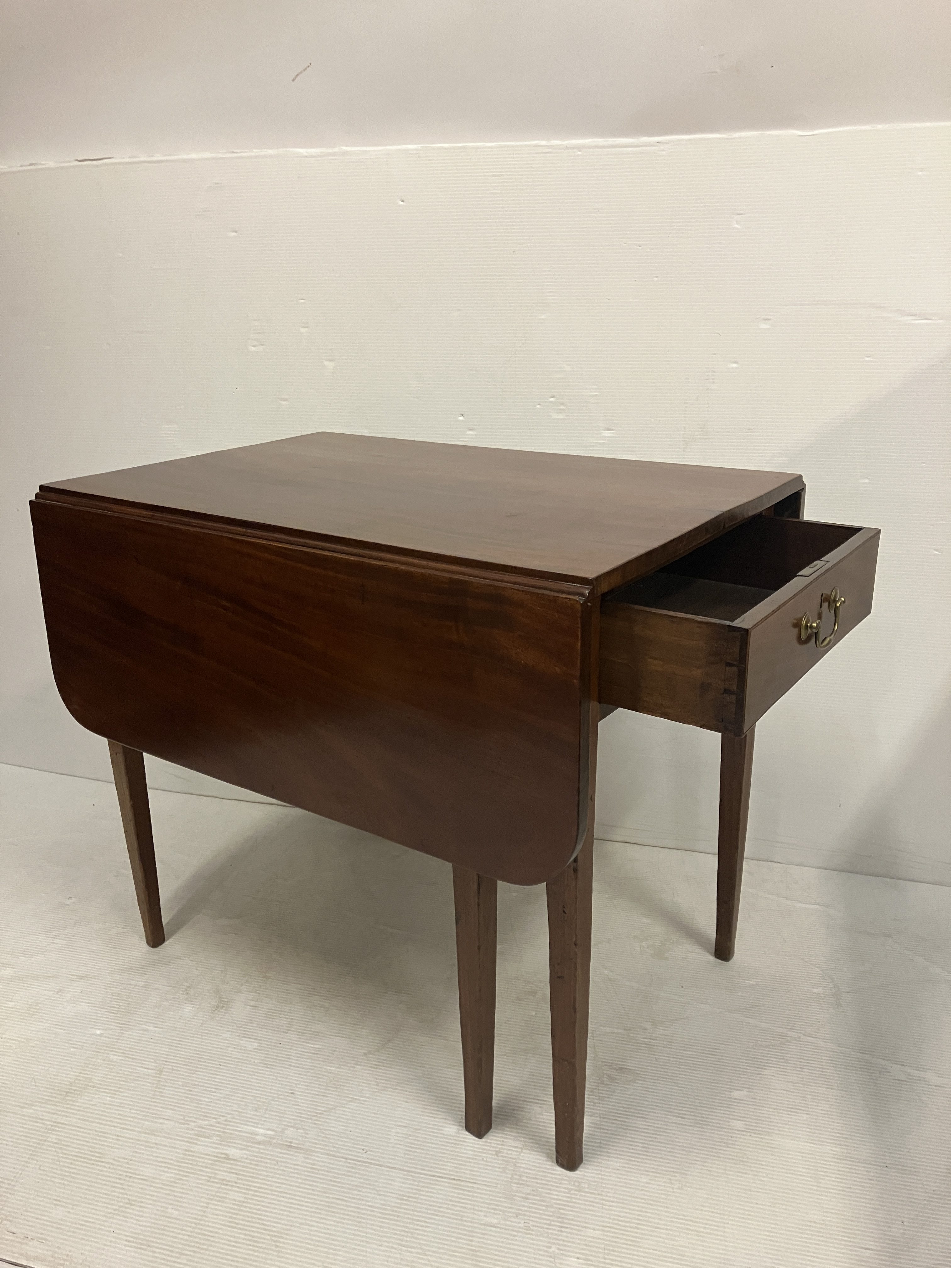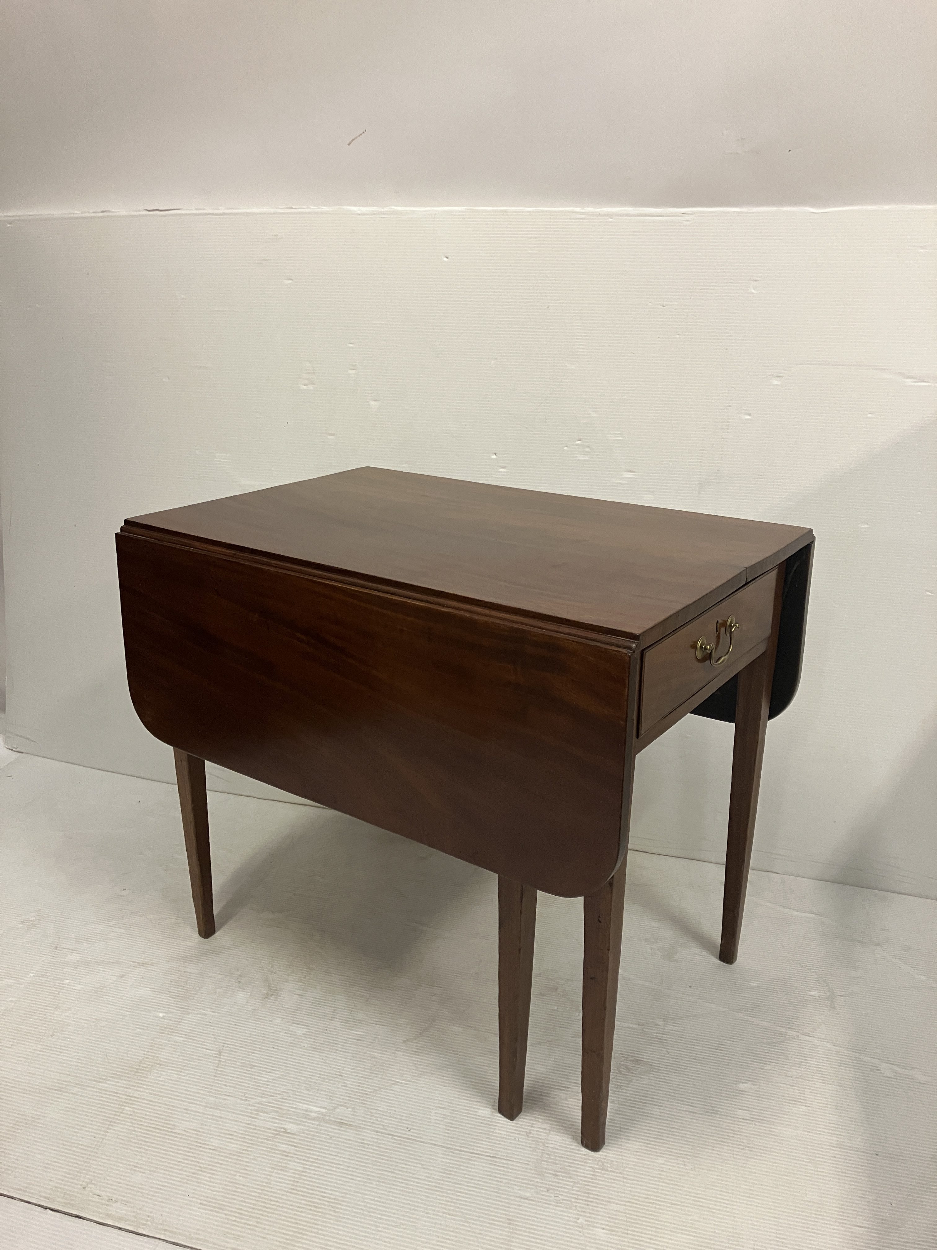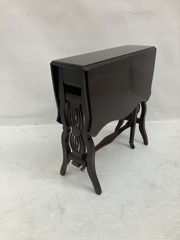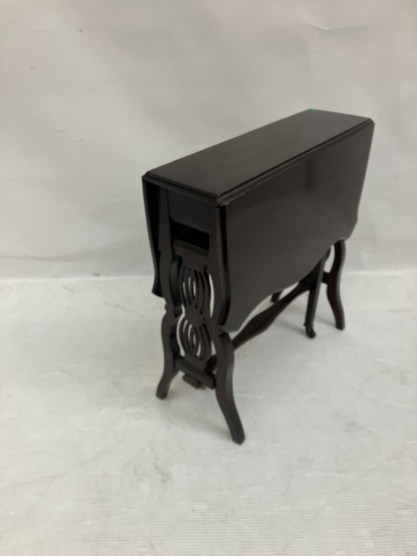 Neat sized mahogany drop leaf table. W. 76cm fully opened, H. 62cm approx.
