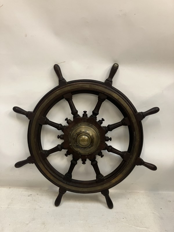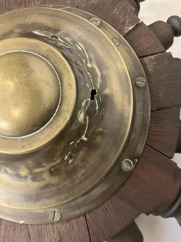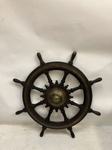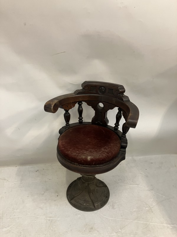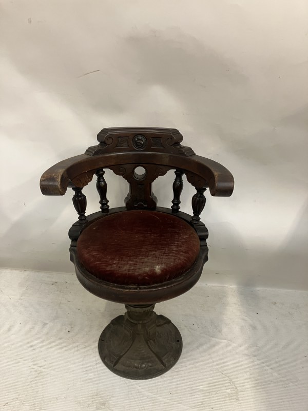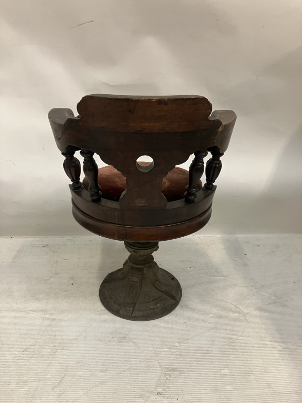 Heavy antique timber and metal base ships chair probably from RMS Celtic.