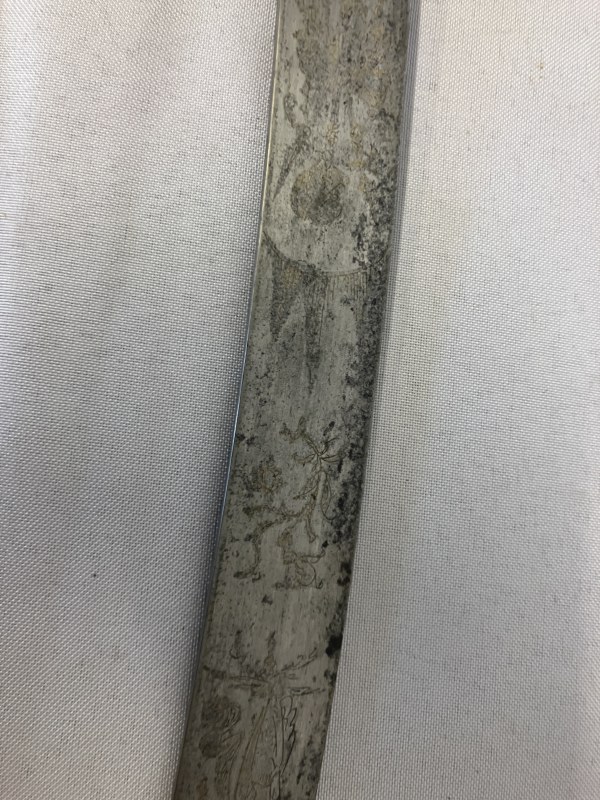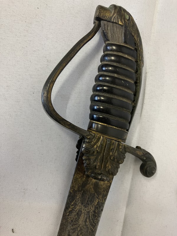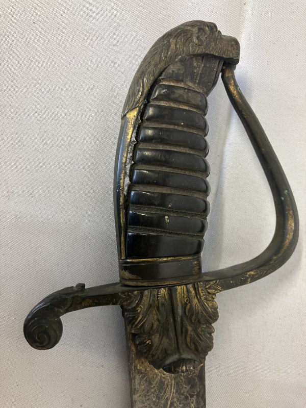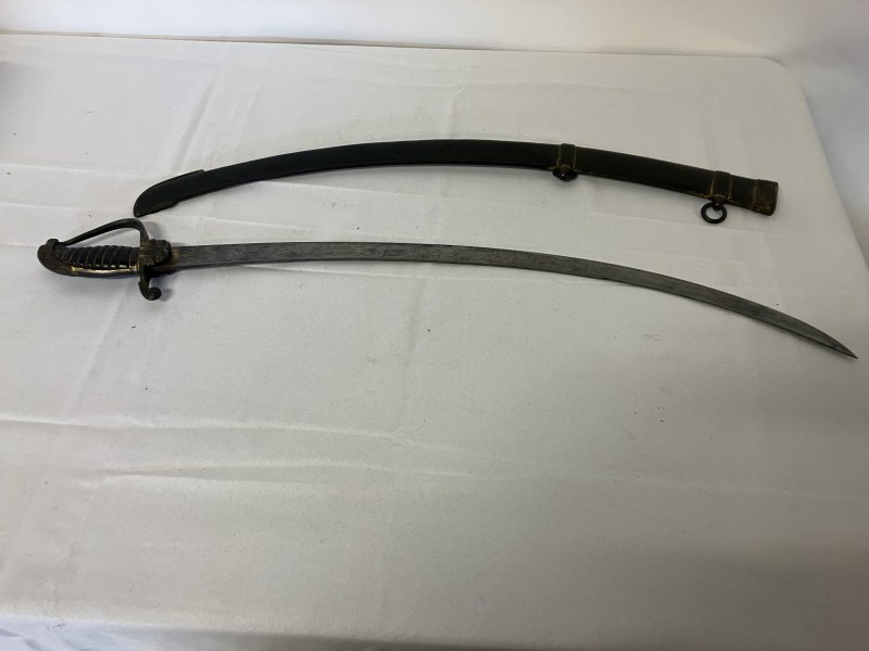 Good antique officer's sword and scabbard. (scabbard worn) L. 80cm.