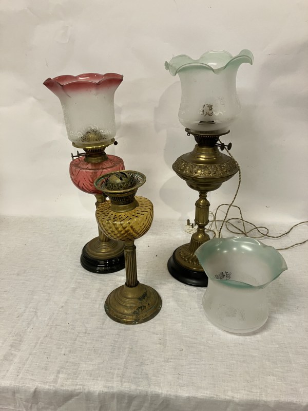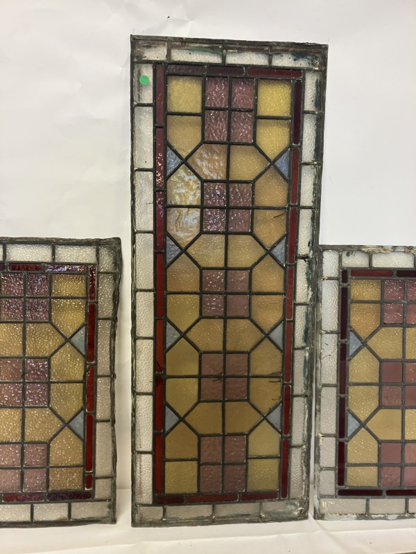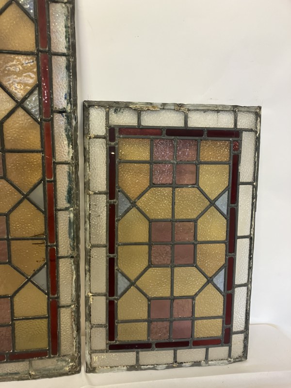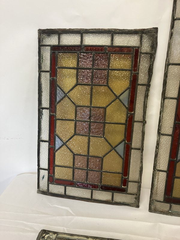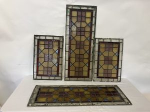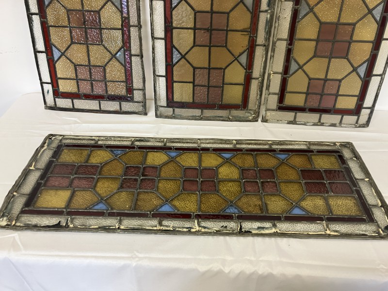 Four old leaded glass panels - Larger one 100cm x 39cm approx, smaller ones - 60cm x 40cm approx. (4)