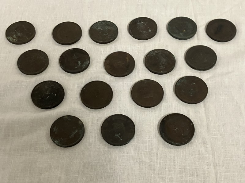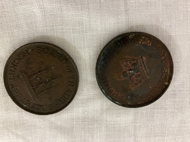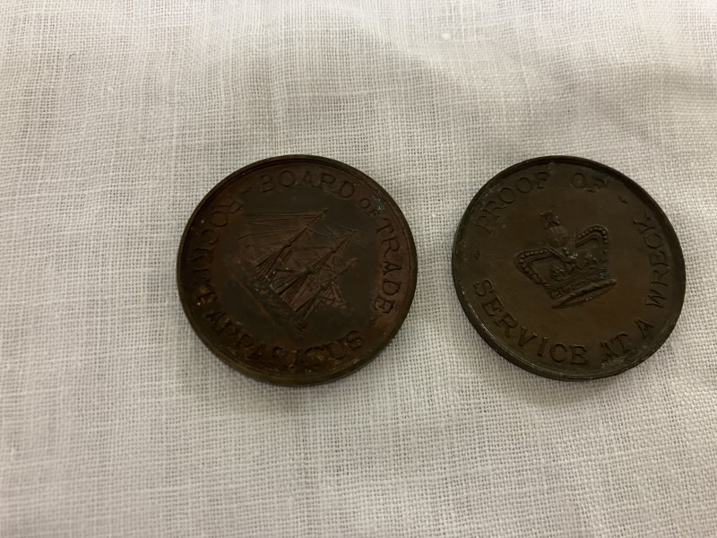 A collection of 18 life saving medallions, one side engraved with a sailing ship and engraved Board of Trade Rocket Apparatus, the other side with Crown and engraved Proof of Service at a Wreck.