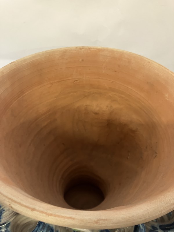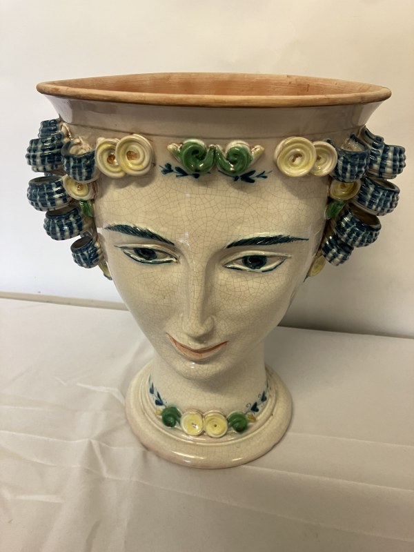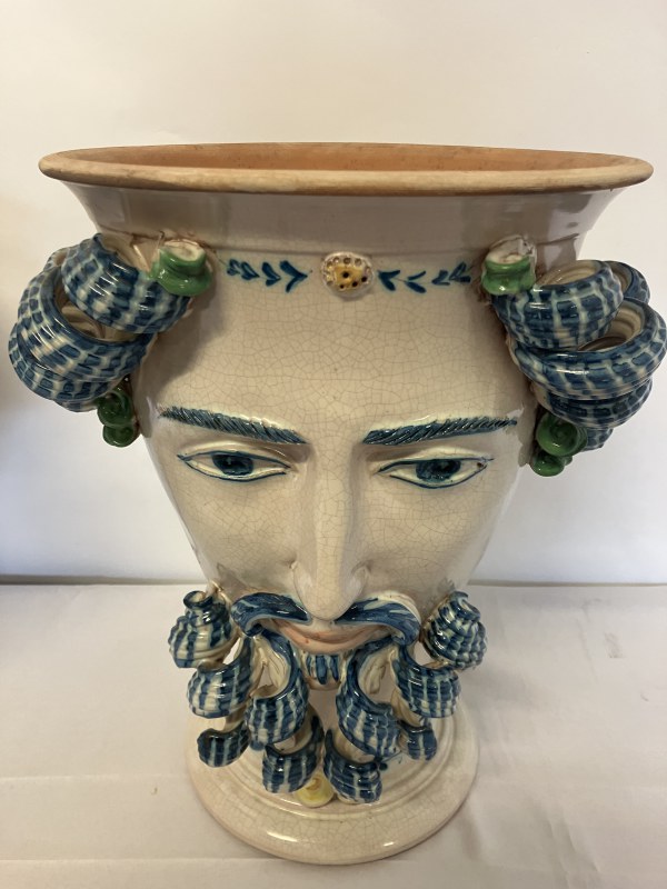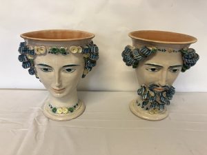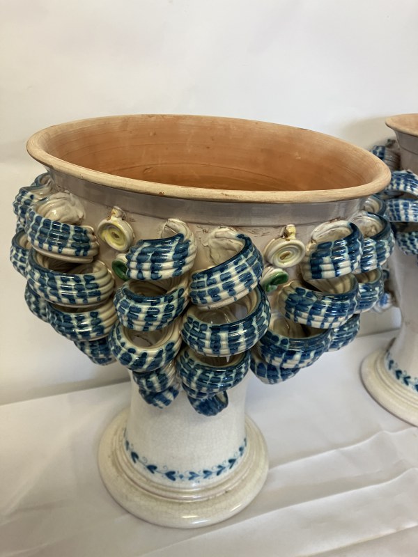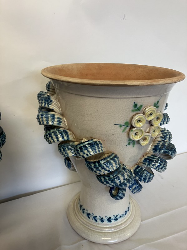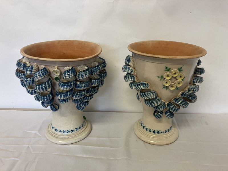 A pair of decorative Italian terracotta planters. (Sicilian) H. 36cm, Diameter 27cm.