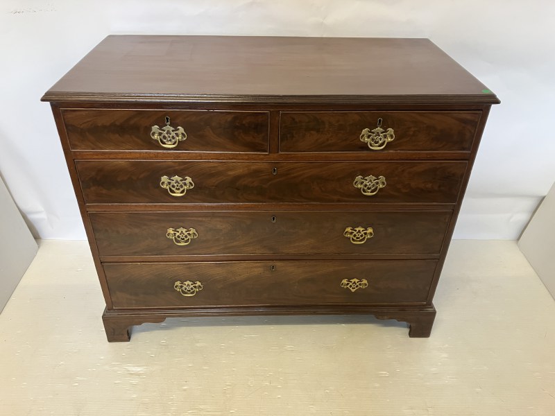 Georgian mahogany chest of 2 short and 3 long drawers raised on bracket feet. W. 107cm, D. 52cm, H. 87cm.