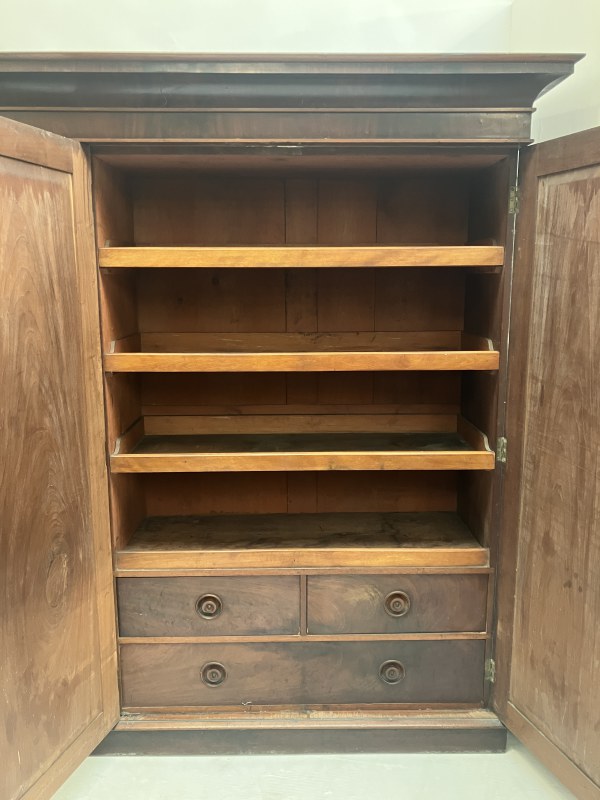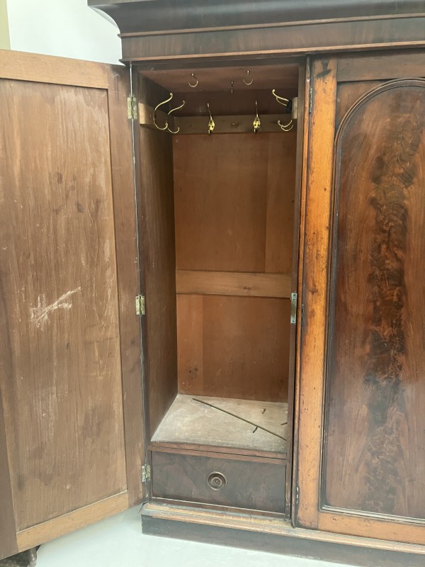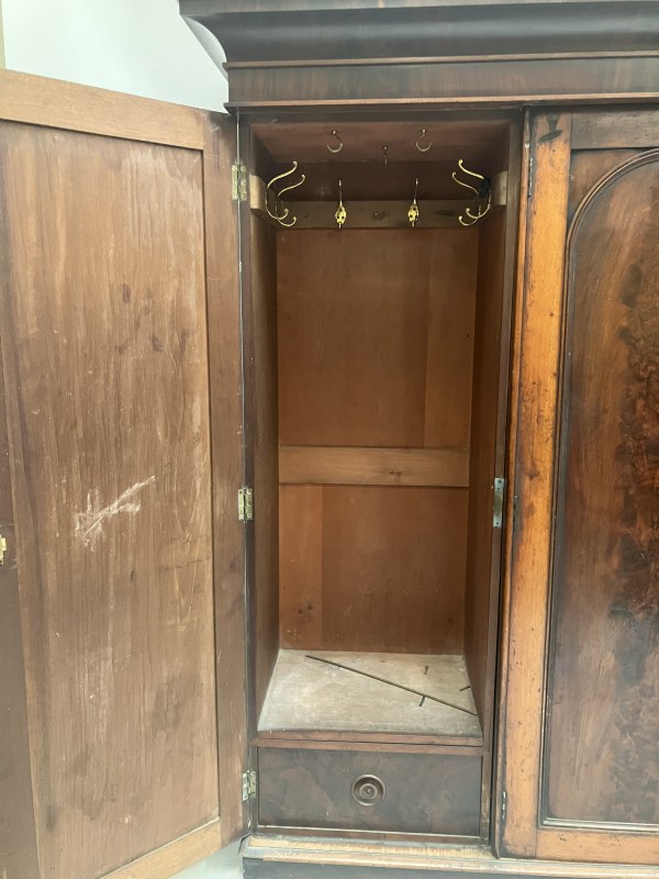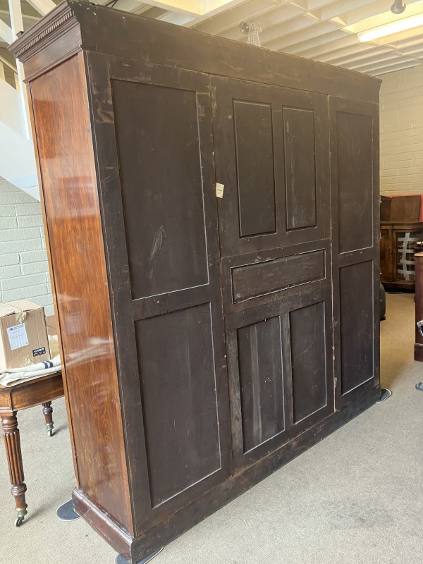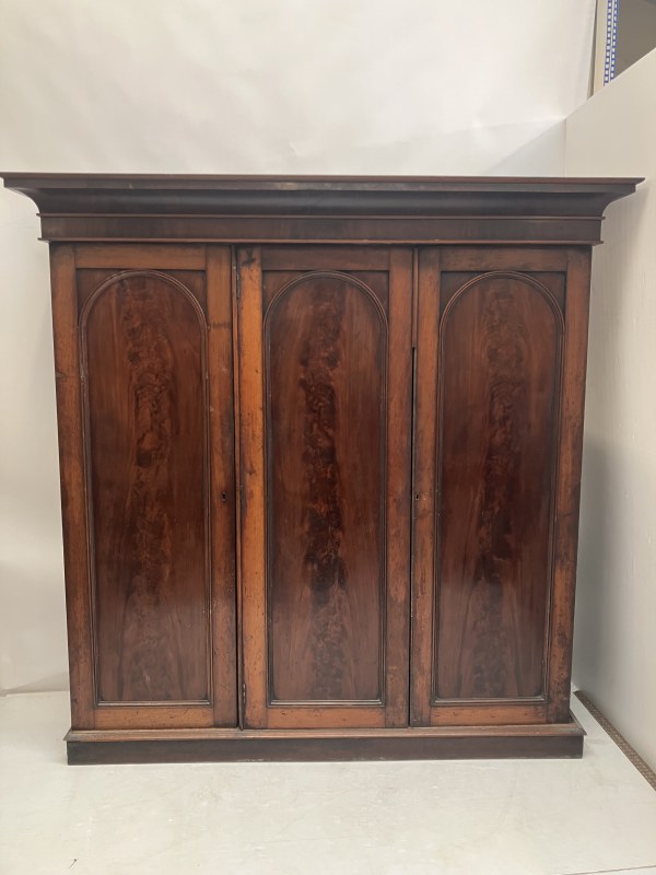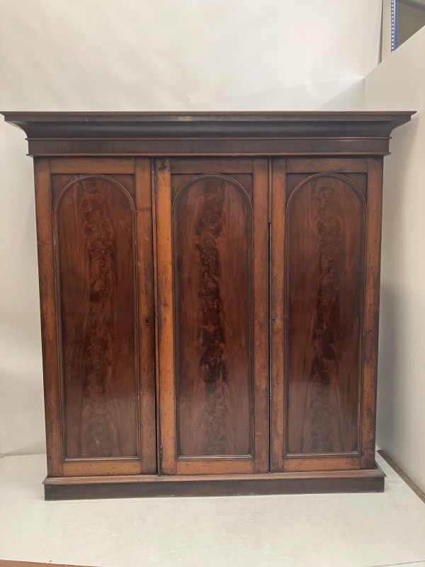 Victorian mahogany 3 door wardrobe/linen press. W. 200cm, H. 206cm, D. 55cm approx.