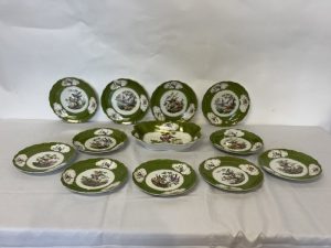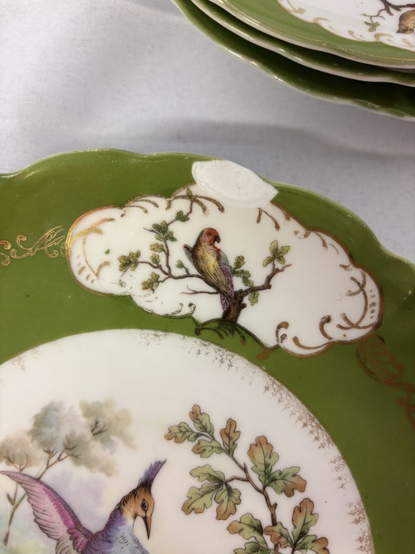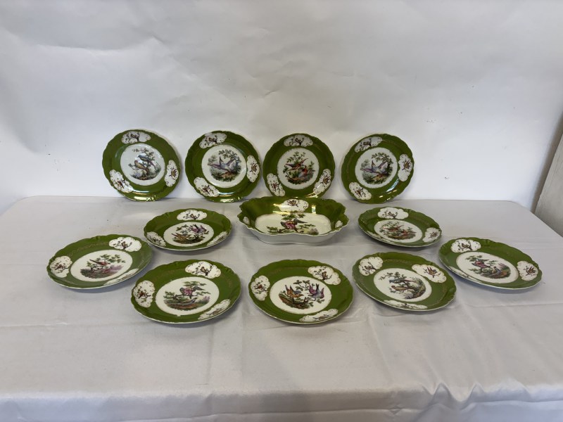 A collection of Bavarian china plates and dish having bird decoration. (12)