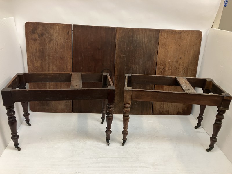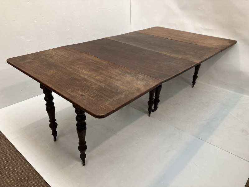 Early 19th century mahogany dining table, very original. This table comes in sections and can be also used as a pair of side tables. L. 223cm W. 119cm.
