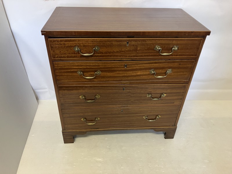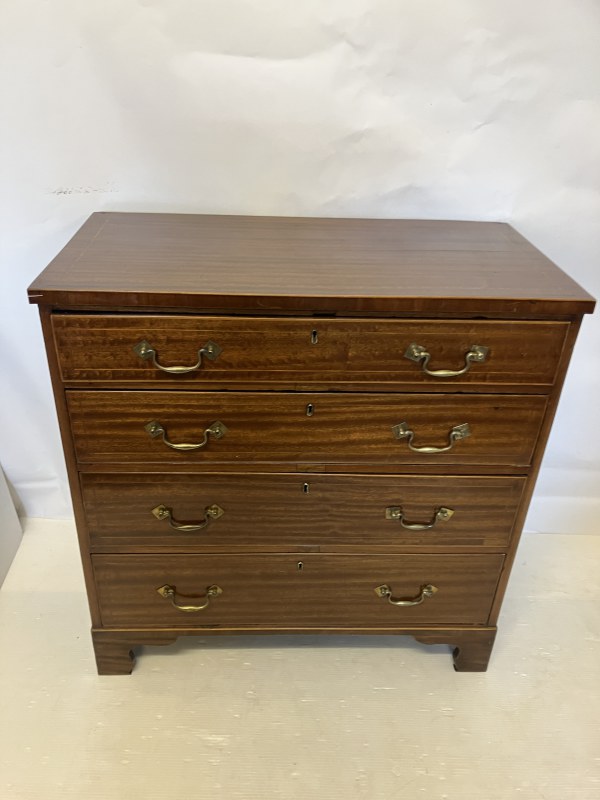 Georgian mahogany chest of 4 graduated drawers having brass drop handles and raised on bracket feet. W. 88cm, D. 45cm, H. 90cm