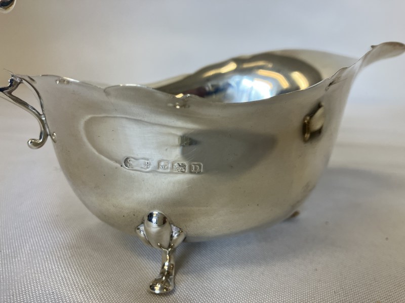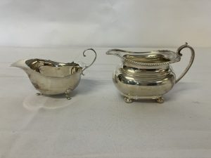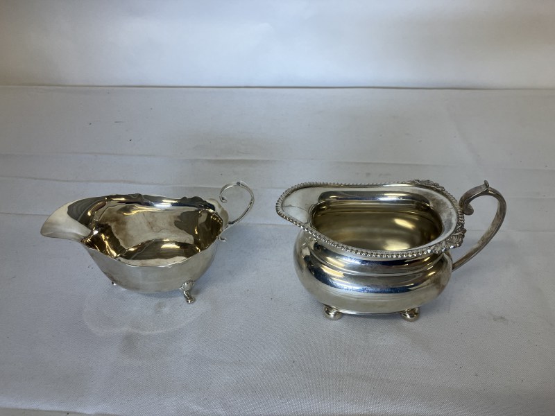 English silver cream jug and sauce boat, Sheffield 1927 & Birmingham 1928, total weight 8 troy ozs. (2)