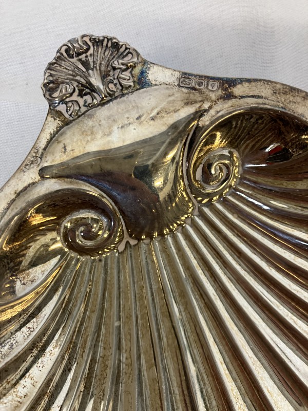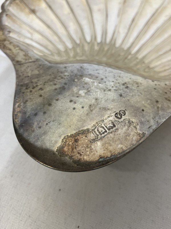 English silver shell shaped dish by Joseph Angel, London. Circa 1811, 8 troy ozs.