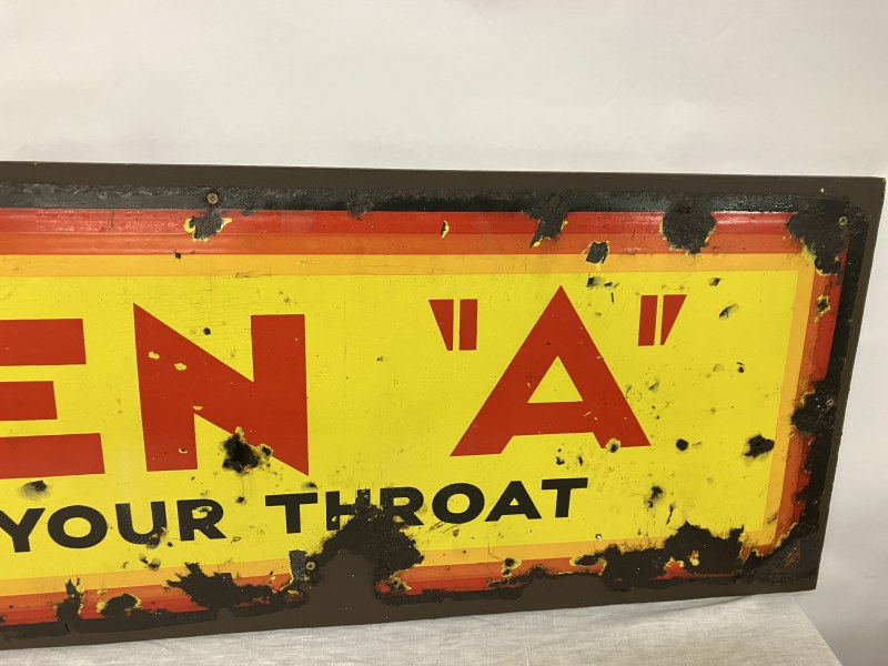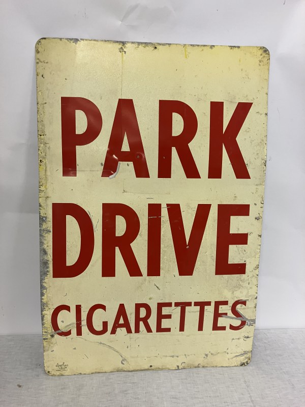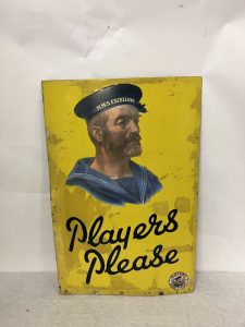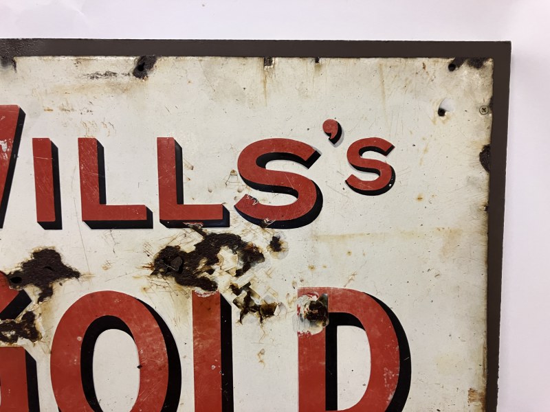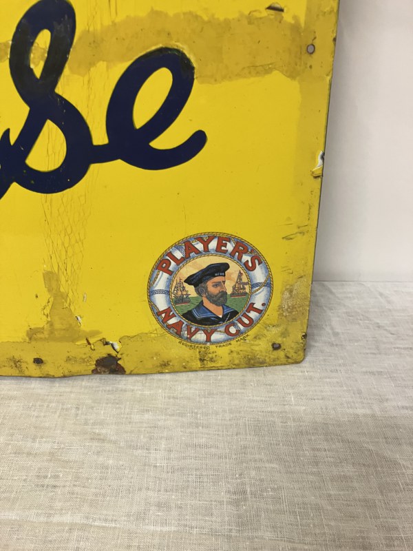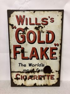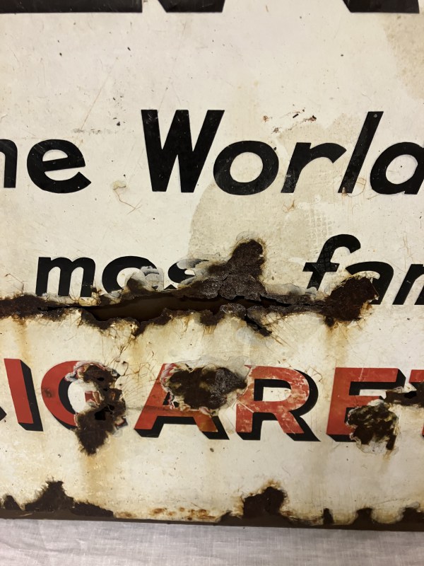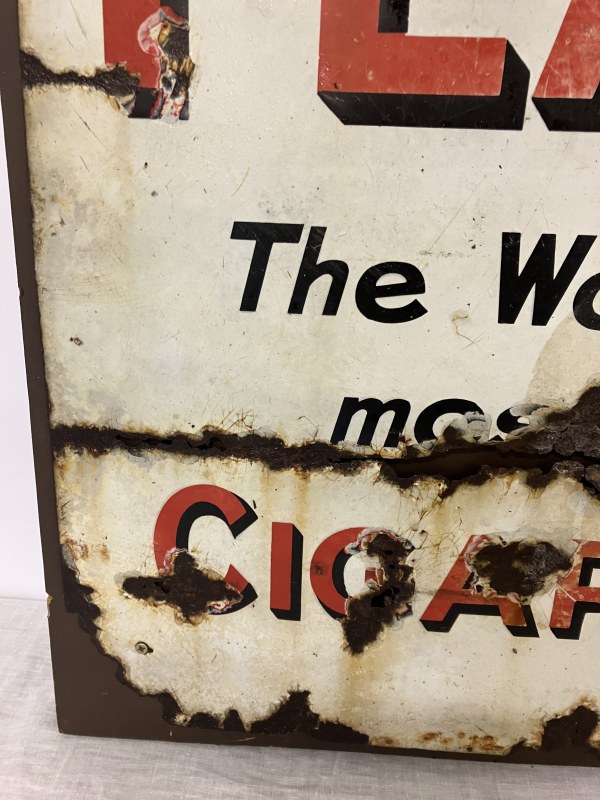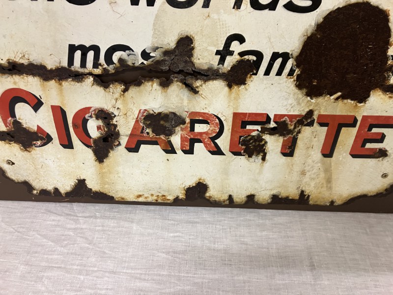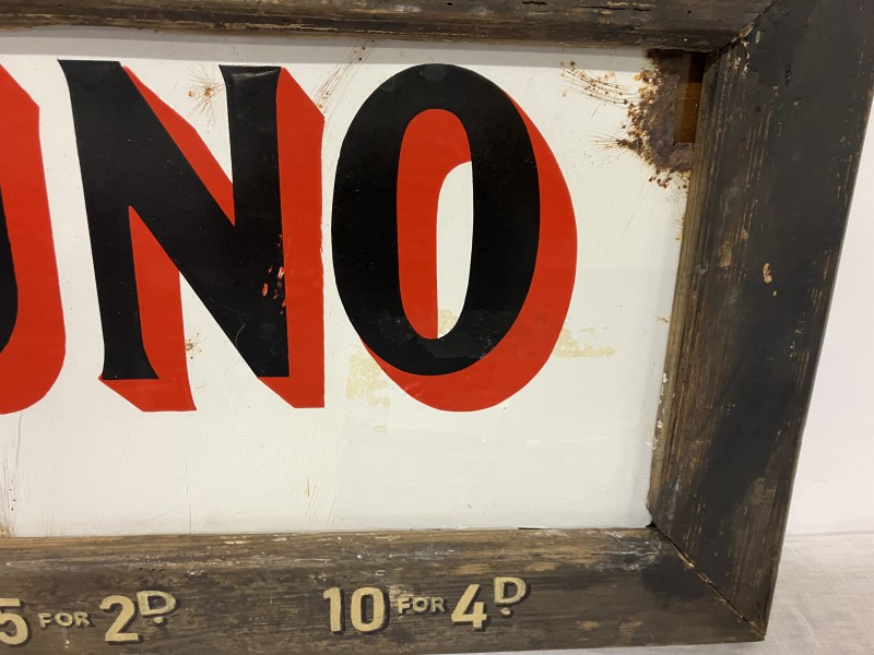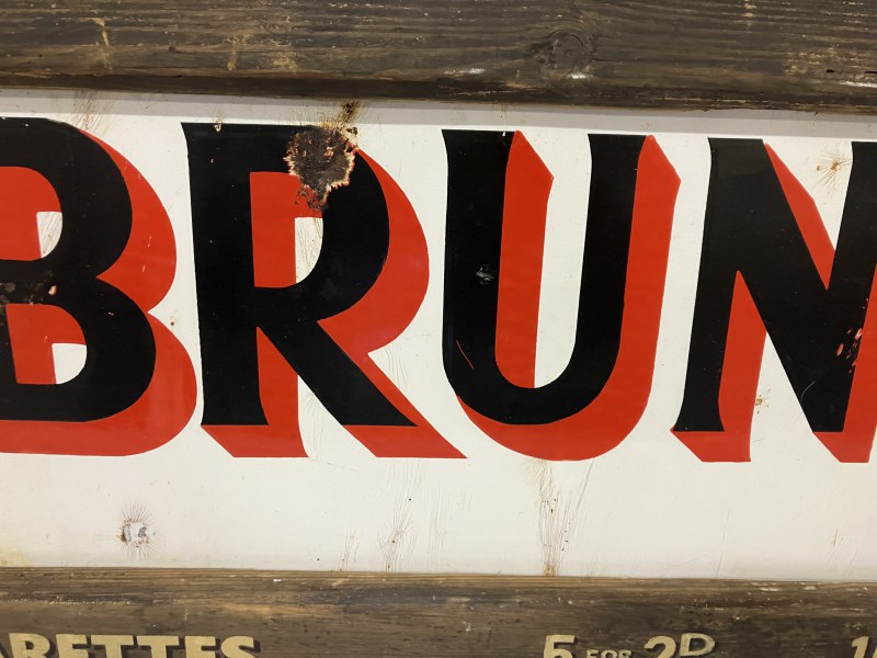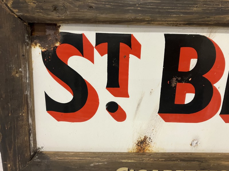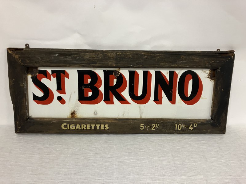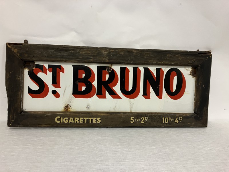 Old metal St Bruno Cigarette advertising sign with timber frame. 39cm x 100cm.