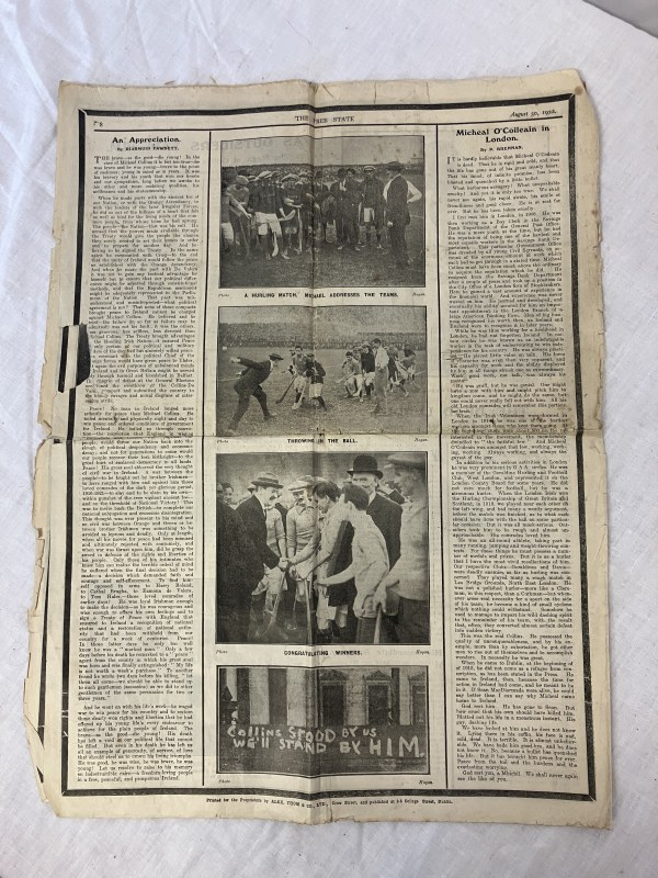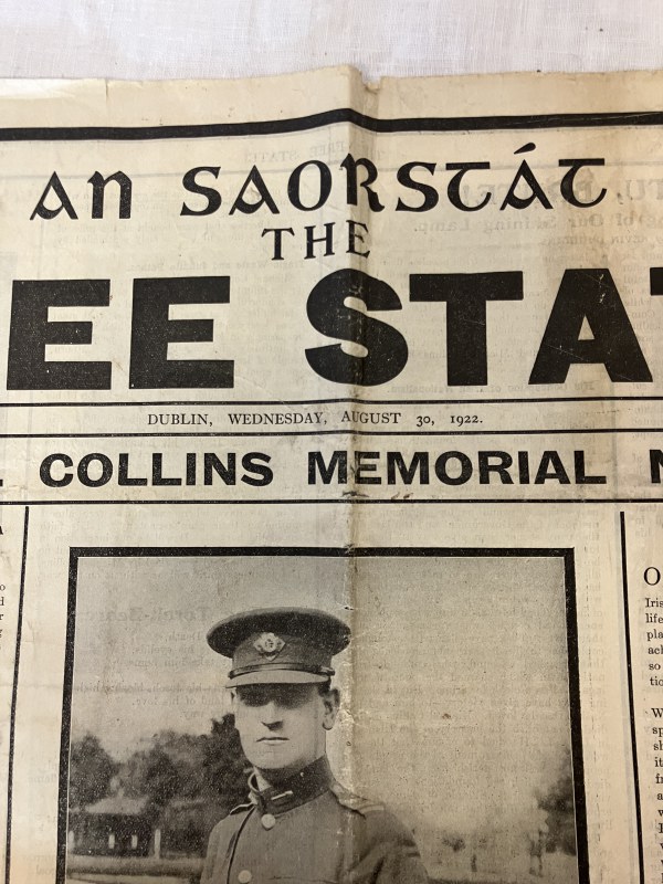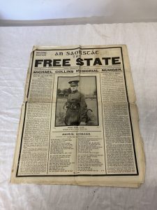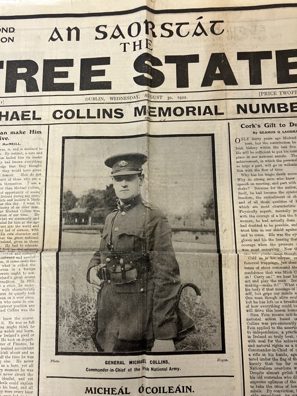 On Saorstát, The Free State, 2nd edition Michael Collins Memorial Number August 30th 1922. Condition - Fair.