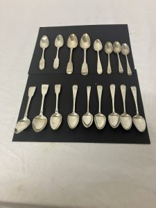 A collection of various Irish Georgian silver spoons and 1 English spoon. Various makers. (17) 7 1/2 ozs.