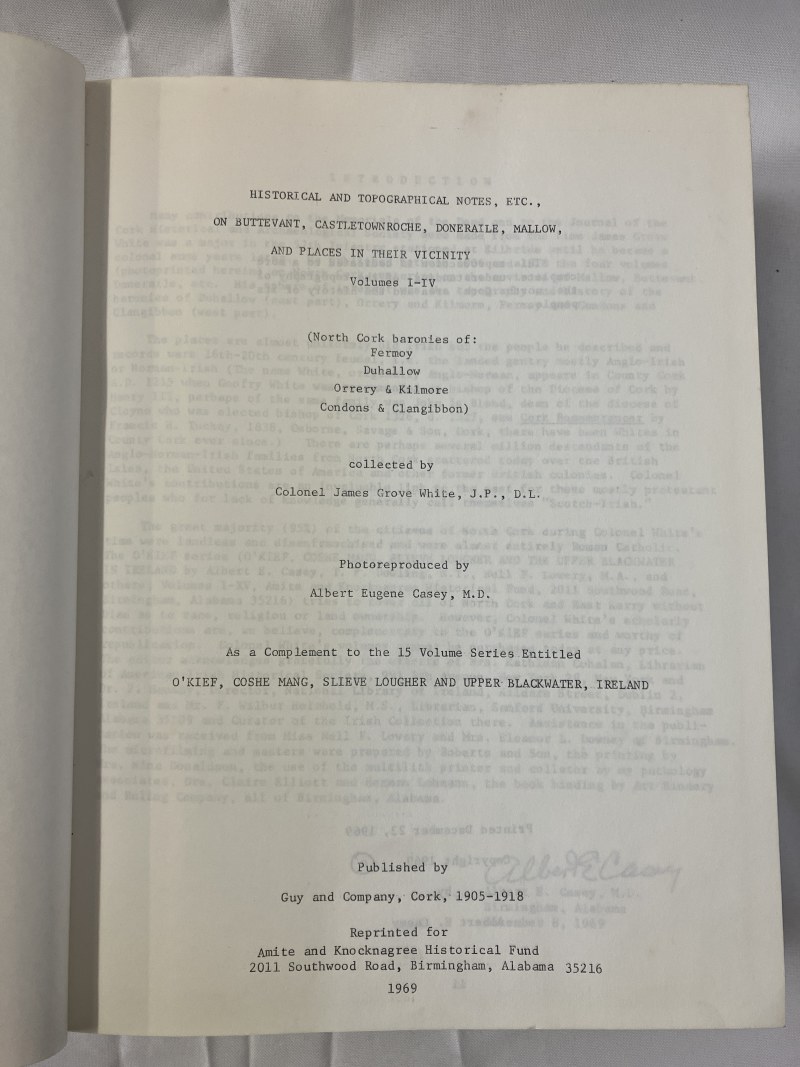 Historical and Topographical Notes on Buttevant, Castletownroche, Doneraile, Mallow and vicinity, Coloniel J. Grove Hill, 4 vols in 1, American reprint.