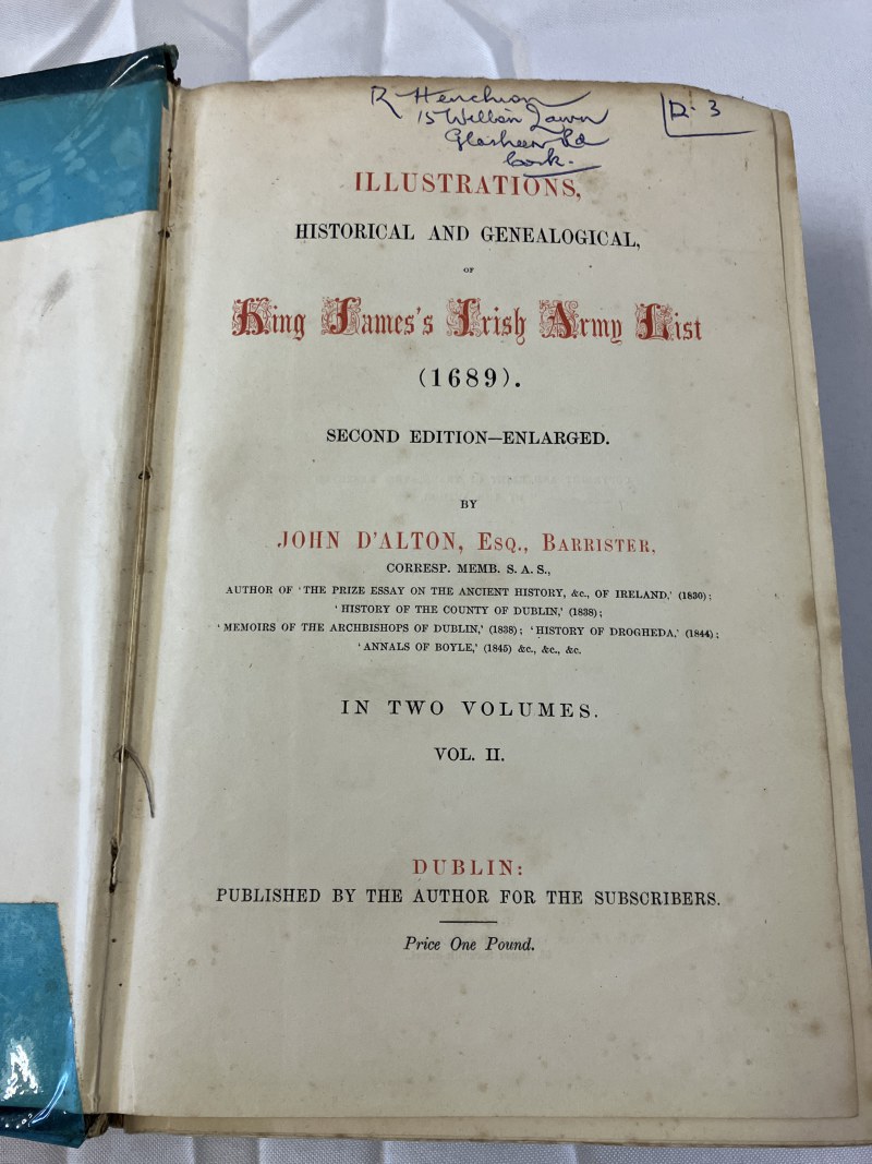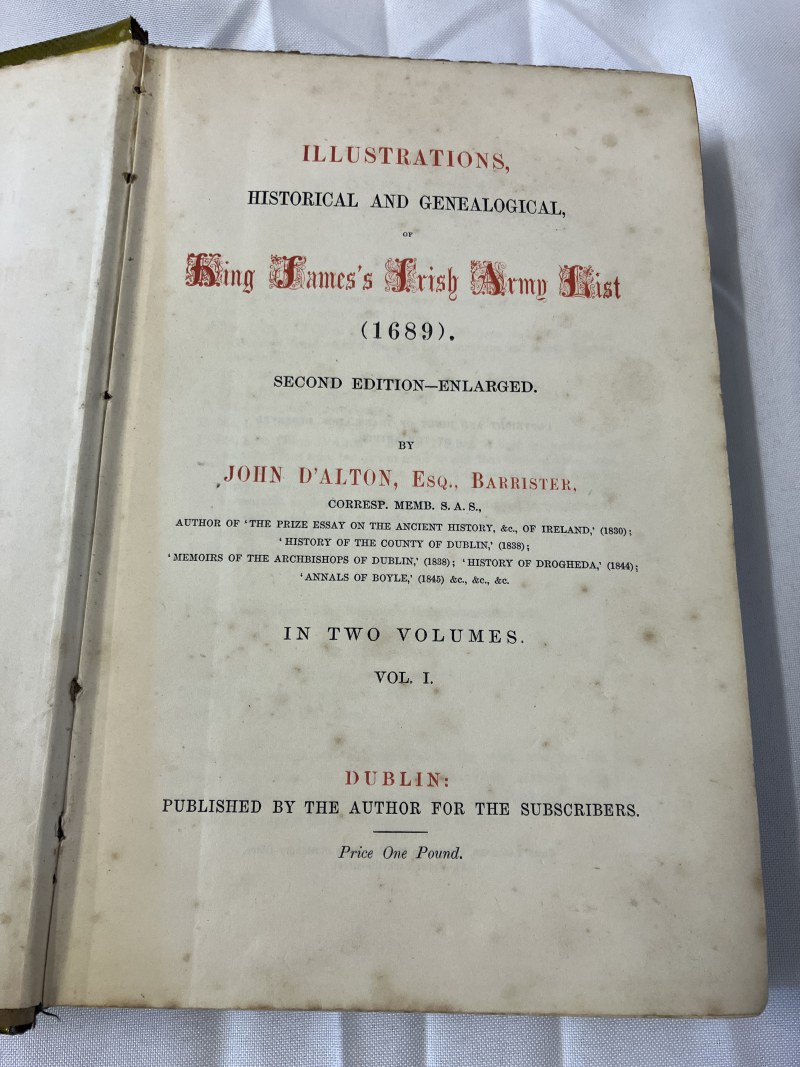King James's Irish Army List, 1689, 2nd edition - enlarged, vols. I & II by John D'Alton.
