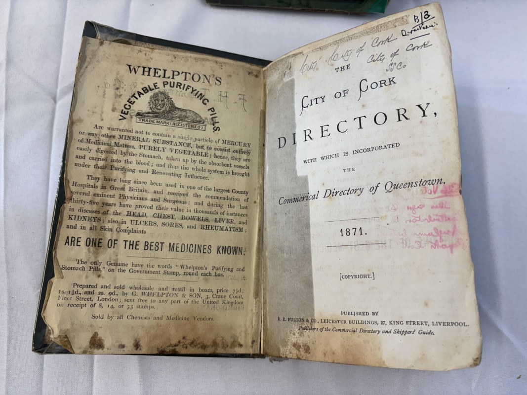 Guy's Directory of Cork for 1875- 1893- 1922-1933 and A City of Cork Directory for 1871.