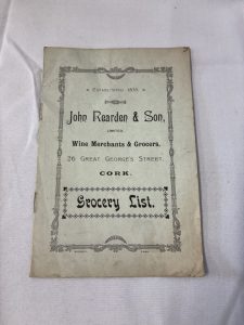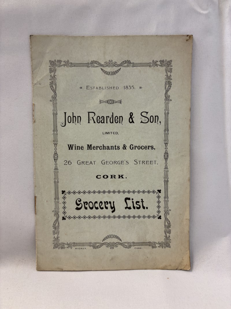 Interesting grocery list pamphlet for John Rearden & Son, 26 Great Georges Street, Cork.