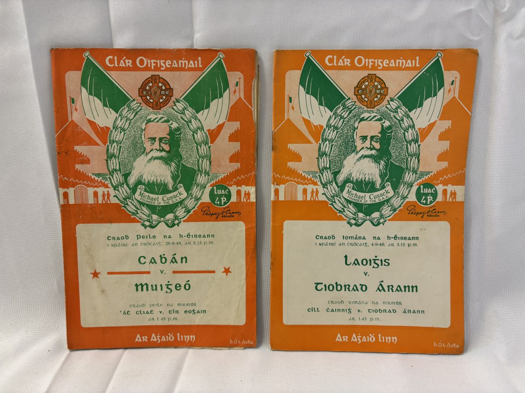 Two programmes - All Ireland Hurling Final, Cavan v Mayo 1948 and an All Ireland Football Final, Laois v Tipperary 1948.