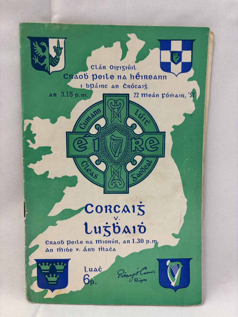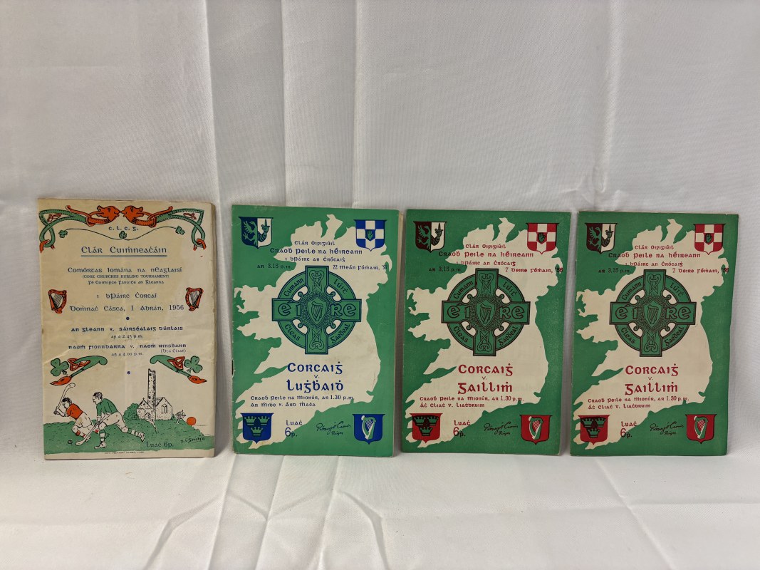 4 Programmes - 2 All Ireland Football programmes Cork v Galway both 1956, Cork v Louth 1957 plus Cork Churches Hurling Tournament programme for 1956 The Glen v Sarsfield Thurles and St. Finbarrs v St. Vincents.