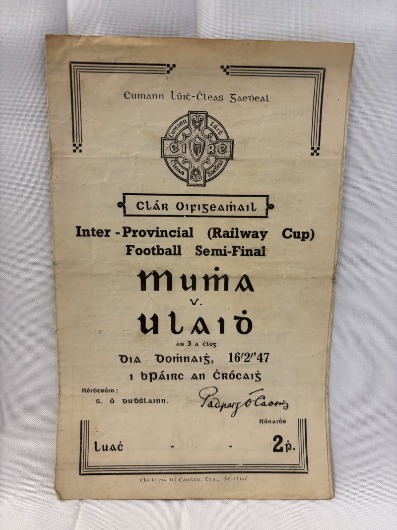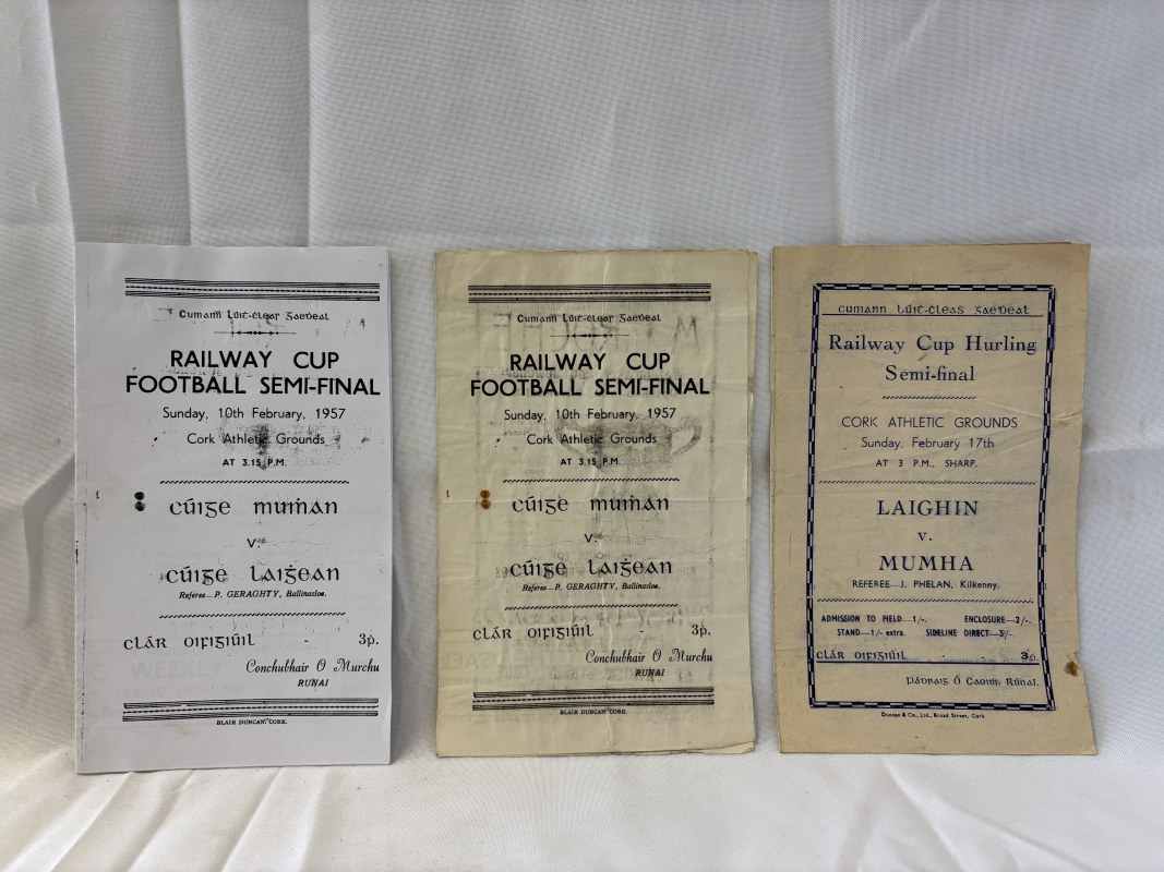Railway Cup Hurling and Football, two early original programmes and 1 photocopy.