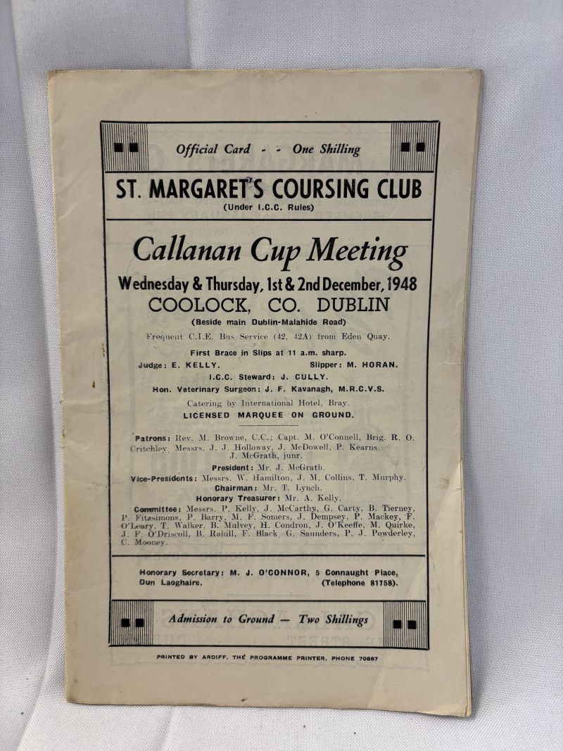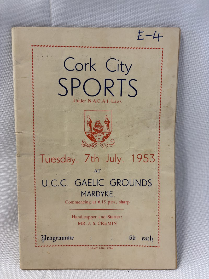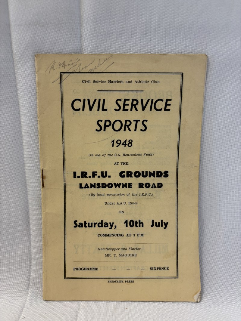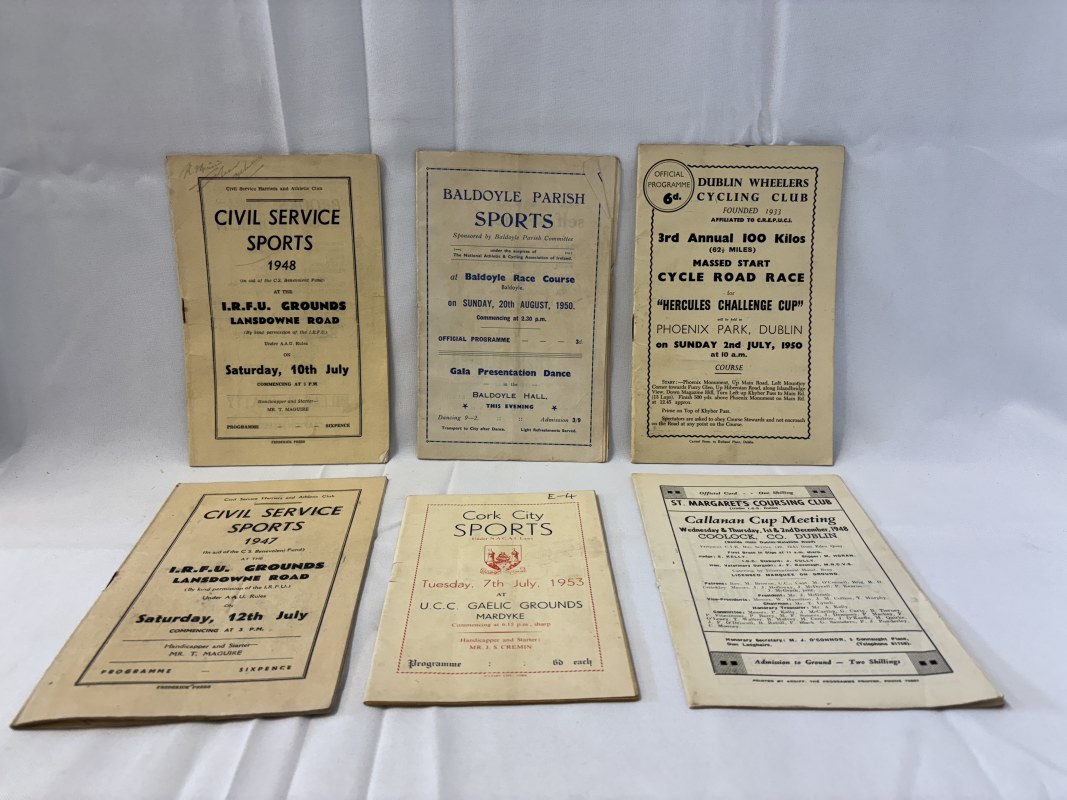 Quantity of programmes -Civil Service Sports for 1947 & 1948, Baldoyle Parish Sports for 1950, Cork City Sports 1953, Dublin Wheelers Cycling Club for 1950, St. Margarets Coursing Club for 1948.