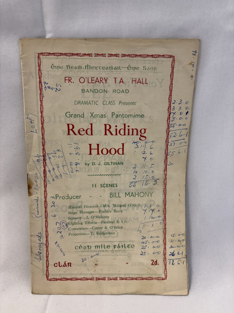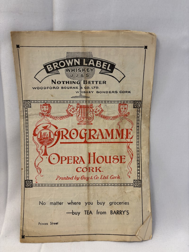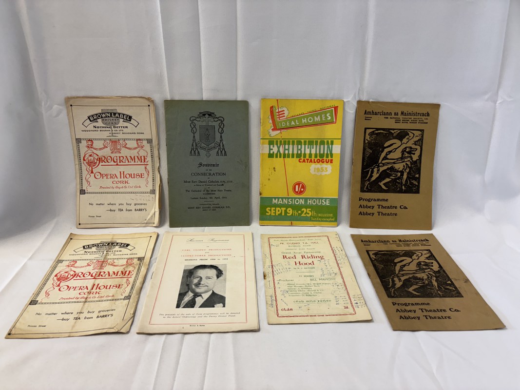 Two early Cork Opera House programmes with 2 early Abbey Theatre programmes; Ideal Homes Exhibition Catalogue for 1953; Souvenir of the Consecration of Most Rev. Daniel Cohalan, 1943; Red Riding Hood programme and an Cork Opera House Souvenir programme 1938-1953.