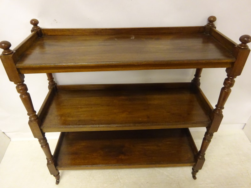Edwardian mahogany dumbwaiter, (needs tightening). W. 95cm, H. 106cm, D. 38cm approx.